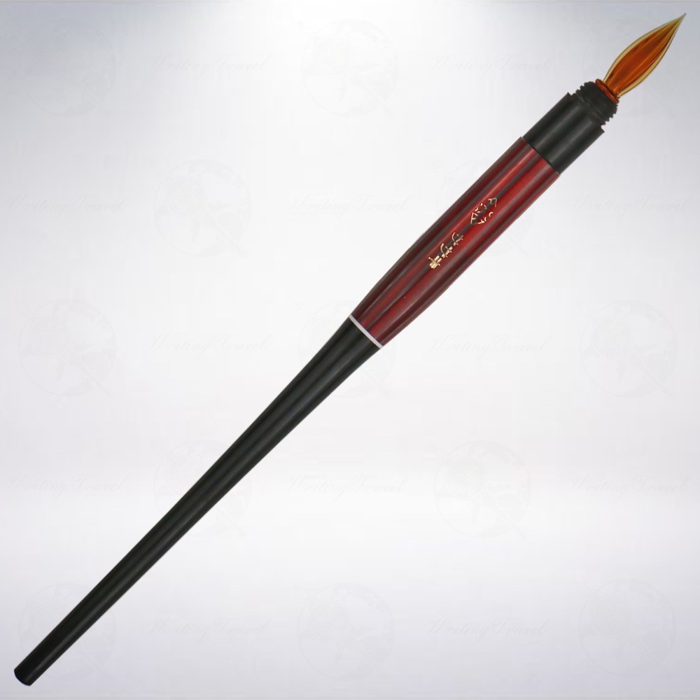 筆桿上方有標示「ササキ」,代表出品者為「佐佐木商店」,上方還有一個專屬佐佐木的商標。將紅色條紋前端黑色部分旋出後,就會露出半透明琥珀色的玻璃筆頭,再將另一那端旋轉回去筆桿,就可開始使用,這是相當方便的設計,不使用時可以保護筆頭,需要時再旋轉出來書寫!