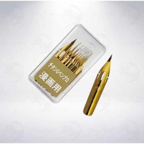 日本ZEBRA斑馬出品的鈦金G尖,耐久性大幅提升,書寫長度可達75m,比起一般斑馬G尖長55m,同時能長時間保持線幅粗細均一,線條不易變粗。另外也很適合寫英文書法的E.S體(Engrosser’s Script)、銅板體(Copperplate)和史賓賽體(Spencerian Script),筆尖軟硬度和彈性比一般zebra G或超研磨Nikko G尖稍微硬一點,彈性最粗可達1.8mm,鍍鈦後使用壽命在所有Zebra出品的G尖中名列前茅。這款筆尖也滿受國外英文書法家的歡迎。