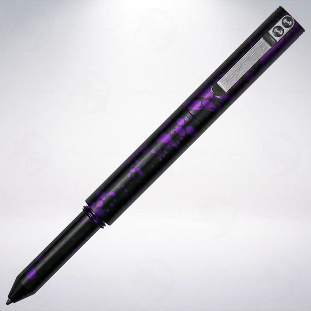「經典機械原子筆/Classic Machined Pens」是一款設計扎實,金屬機械感爆表的產品,整支筆身皆以金屬鋁(Polished Aluminum)加工製成,並施以特殊的黑紫色陽極化處理,紫色噴濺紋路在黑色的筆身表面,使得整體更佳動感,也更加醒目。闔蓋長度約為10.2cm,重量約為32.5g,大小適中,重量合宜,搭配上堅固小巧的筆夾,十分適合當作日常隨身攜帶的好夥伴,無論用於簽名、筆記或畫草圖皆非常實用。筆芯規格為「Fisher Pressurized Refill」,更換時需要以平口起子將背面旋開即可更換,非常具有操作樂趣喔!