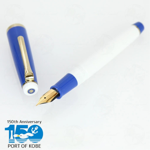 日本關西地區著名的文房具店「NAGASAWA」所發行的紀念款鋼筆,為了紀念神戶港開港150週年,靈感來自神戶市的港口、船舶和人群,筆身以白色為主體,搭配上藍色的筆蓋,彷彿倚著窗望向大海的感覺。筆尖為不鏽鋼,其上有150週年的特殊圖騰,筆尖尺寸僅有MF尖(中細字)單一版本。