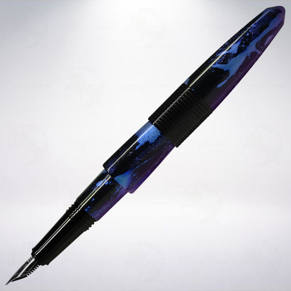 來自俄羅斯的新興品牌「BENU」由設計師Alex Semain與Kate Dmitrieva共同經營,因熱愛追求美麗事物,認為「筆,不只是筆 (More than just a pen)」,所以以獨特的方式重新詮釋它,為書寫用具注入更繽紛的色彩與生命,想帶給大家耳目一新的書寫樂趣。「CHAMELEON」系列鋼筆,以獨特的三面造型呈現,創新且大膽,使用如變色龍般的材料,從不同角度看可呈現多樣的顏色,每款所搭配的色彩,時而炫麗,時而夢幻且神秘,再度詮釋全新的寫字藝術。「魅力/Charming」,以藍色珠光為基底,黑色與紫色金蔥點綴其中,而黑色與紫金蔥偶爾相互重疊,巧妙營造神秘感,變換觀看角度,藍色珠光變成紫色,魅惑您的眼。三面筆蓋環為黑色樹脂,一面刻著BENU標誌,其他兩面則為簡單橫條紋,旋蓋打開筆尖,筆身從三面造型變成圓形,顏色則延續筆身的配色,握位處則為黑色樹脂,Charming搭配銀色筆尖,筆尖為鋼尖。