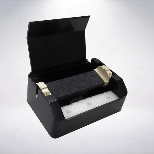 日本生產製圖用品的老牌公司「內田洋行(ウチダ)」所出品的專業芯研器,適合大量使用鉛筆相關用具的人士使用,筆芯可以在黑色的磨石上面研磨,達到想要的尖銳度,前方的白色海綿處,可以用來清理研磨下來的筆芯碎屑,其上有3個孔,插入第1個後依序橫移到第3個,即可完成。