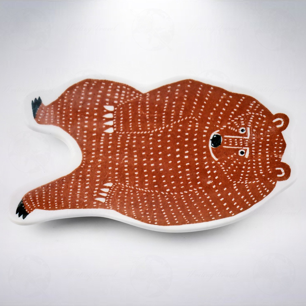「倉敷意匠」為致力發揚日本傳統手工藝的生活雜貨品牌,擅長與不同的手工藝職人或工房合作開發企劃各式生活道具及用品。瓷器本體使用傳統工法「型紙摺り」與「銅版転写」製作而成,特殊的熊造型施以傳統色「茶色」呈現,帶有濃濃的和式風格,使用手工製作,每件作品間在顏色或紋路皆會有所不同,每個都是獨一無二的樣子。平常放在書桌上的時候,可以用來收納些許小型物品,例如迴紋針、貼紙、筆尖等。