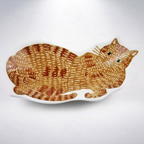 「倉敷意匠」為致力發揚日本傳統手工藝的生活雜貨品牌,擅長與不同的手工藝職人或工房合作開發企劃各式生活道具及用品。瓷器本體使用傳統工法「型紙摺り」與「銅版転写」製作而成,特殊的貓咪造型施以傳統色「茶色」呈現,帶有濃濃的和式風格,使用手工製作,每件作品間在顏色或紋路皆會有所不同,每個都是獨一無二的樣子。平常放在書桌上的時候,可以用來收納些許小型物品,例如迴紋針、貼紙、筆尖等。
