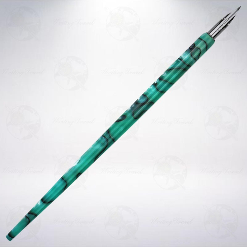 以壓克力樹脂手工製作的精緻筆桿,以綠松石色為主調,並搭配黑色的漩渦軌跡,每支皆帶有獨特紋路。裝置筆尖的套圈以不銹鋼製成,久用也不易生鏽,也可適用於大部分的沾水筆尖。不僅剛開始學習書寫的學生/初學者使用起來得心應手,即使對於高級藝術家和書法家來說,也是實用性十分高的工具。
