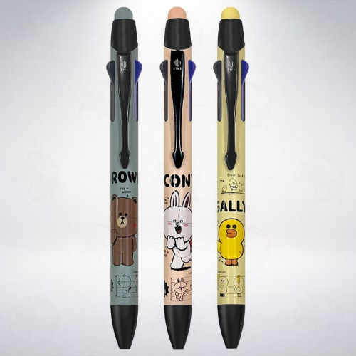 「蒙恬/IWI」攜手「LINE FRIENDS」推出的童趣多功能筆,含有滑順超好寫中性黑、藍、紅色筆芯,並配有3C產品觸控頭。採用超清爽霧面馬卡龍色筆身加上熊大、兔兔、莎莉速寫風格圖案,可愛來襲!興奮到模糊!是喜歡畫畫和寫作的LINE FRIENDS愛好者的絕佳書寫工具,可說是兼具實用功能和高收藏價值的最潮伴手禮!
