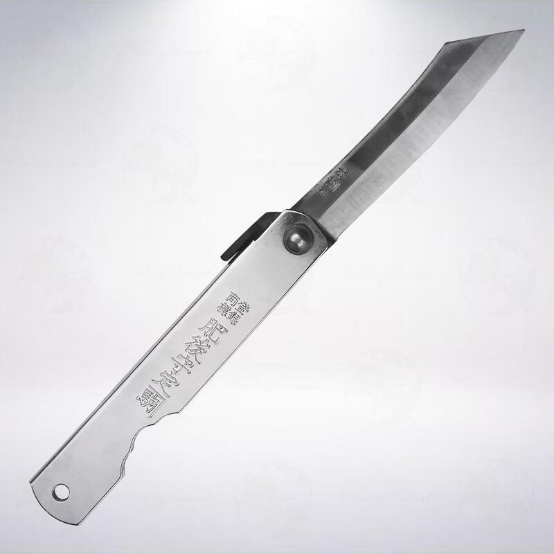「肥後守(ひごのかみ)」是日本製作折疊型小刀的先驅之一,因為在19世紀末左右大量銷往「肥後國」(現今的熊本縣一帶),因此得名,在削鉛筆機不是那麼普及的年代,可是學生們削鉛筆的必備工具。刀片使用特殊的夾層鋼鍛造方式,刀鋒選用的鋼材為SK鋼,含炭素高,非不鏽鋼,所以日常使用後必須做適度的上油保養,以防止生鏽。另外,如果刀刃發生鈍化,可以經由磨刀讓刀刃再度回復鋒利。刀鞘部分是不鏽鋼材質,可以視情況利用水蠟等細緻研磨劑再生光亮,必要的話再上油品保養即可。