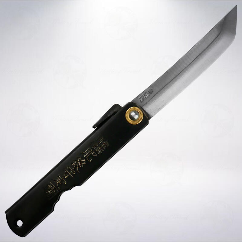 「肥後守(ひごのかみ)」是日本製作折疊型小刀的先驅之一,因為在19世紀末左右大量銷往「肥後國」(現今的熊本縣一帶),因此得名。刀刃部使用青紙鋼材(最接近古代製造武士刀的鋼材),以3層鋼鍛造而成,含炭素高,所以日常使用後必須做適度的上油保養,以防止生鏽。刀身之成形、淬火及開鋒皆依照武士刀一樣嚴謹的作法,故其鋒利度及強度皆可媲美武士刀,類似武士刀之弧度刀刃,則完全是日本風格的造型。 另外,如果刀刃發生鈍化,可以經由磨刀讓刀刃再度回復鋒利。刀鞘部分是不鏽鋼材質,長久保存,覺得有必要的話再上油品保養即可。折疊式的肥後守,將切割用的小刀加以改良成為實用的單手折刀,不但展刀方便,且易於攜帶,刀鞘帶孔,可掛在鑰匙圈上,可視為單手折刀之始祖。
