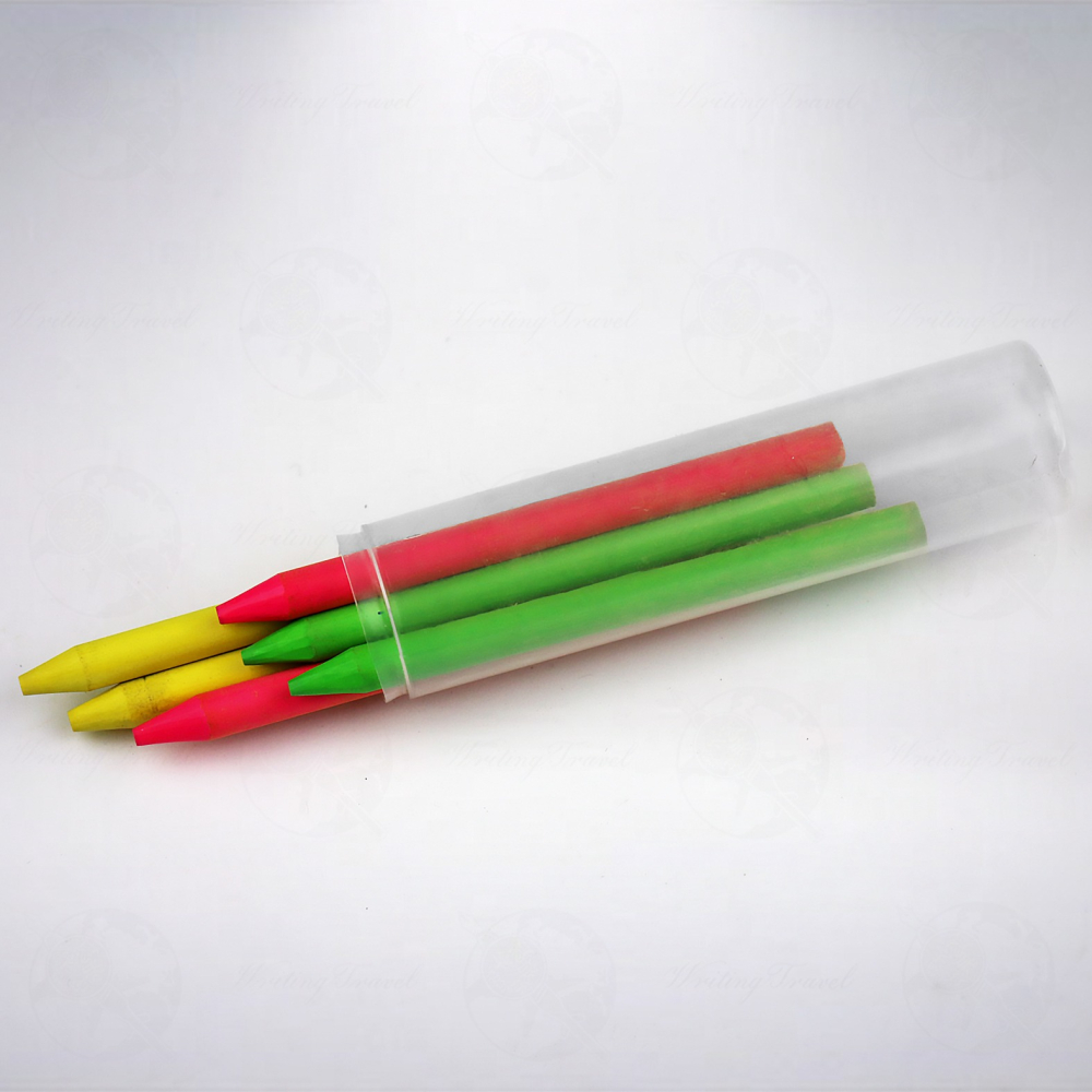 e+m所出品的5.5mm替換筆芯,長度為80mm,每盒包含有6支筆芯,包含螢光粉、螢光黃、螢光綠各2支,筆跡皆不可擦除,以塑膠製筆芯桶包裝。