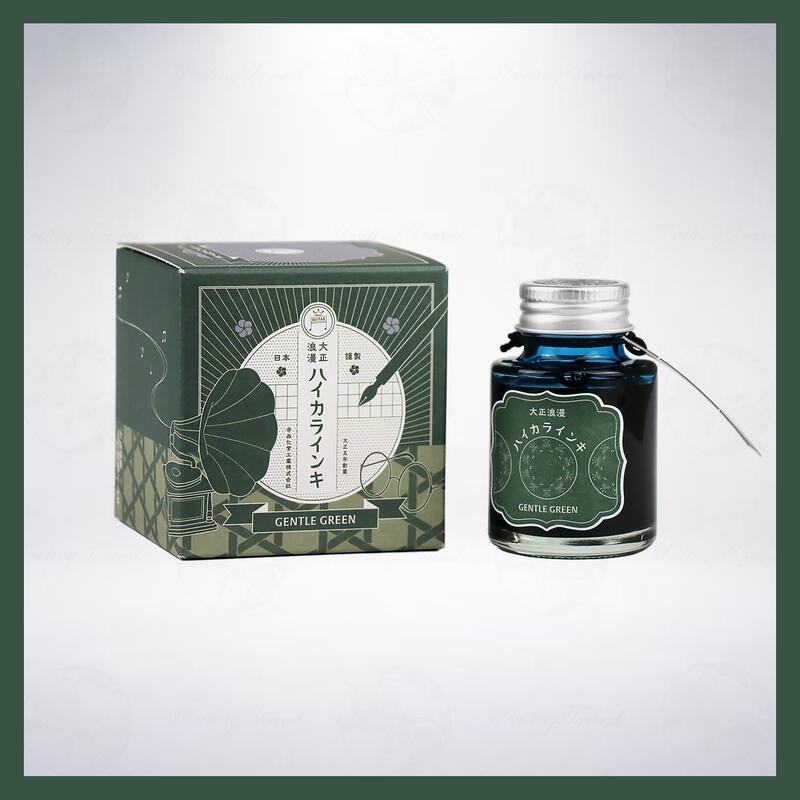 簡介: 「奔馳在大正浪漫的回想」,1918年創業時,寺西化學工業的標誌性產品就是墨水。那個時代想要為世界提供色彩並為日常生活做出貢獻的夢想沒有改變。像大正時代的人們一樣,通過夢想克服了動蕩的時代,寺西化學將當時的想法放入墨水瓶中。一直在提出希望為文化生活做出貢獻的產品。在墨水瓶的頂部,寺西化學工業的商標「吉他標誌」裝飾著創業初期的翻版設計。「柔和綠/Gentle Green」為象徵紳士的綠色,代表流行娛樂的多樣化色彩。