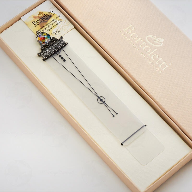 「Bortoletti」發跡於威尼斯河邊緣的一個小型實驗室。基於對書寫的熱情,提供與製作完全手工製的高品質各式書法用具。 主體以青銅雕刻和Murrina玻璃工藝共構而成,充滿各種幾何和花卉圖案。「Murrina」為深具威尼斯風格的在地技術,其使用可以追溯到腓尼基和亞歷山大時代,在古羅馬時期的花瓶和碗中發現。一直到19世紀初的多位玻璃大師的推廣,成為正宗主流的威尼斯玻璃藝術品。