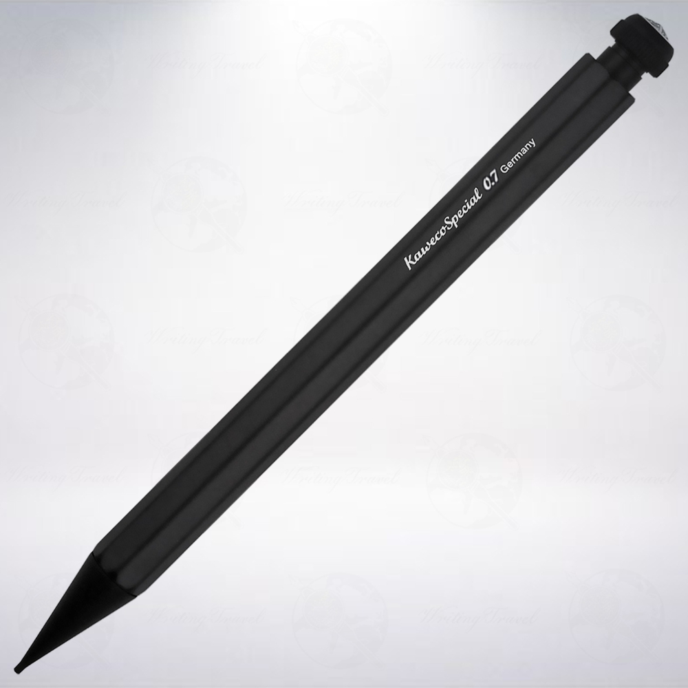 簡約的八角形筆桿設計,搭配上消光黑色以及陽極氧化鋁技術構成了實用性十分高的Kaweco Special自動鉛筆。筆芯尺寸為0.7mm, 按壓式出芯,在筆蓋下方附有筆身橡皮擦,筆蓋上則是帶有Kaweco的經典標誌。另外,舊款的筆頭為一體式設計,整體含護芯管以黑色樹脂製成,與現行版本的銀色金屬護芯管不同。