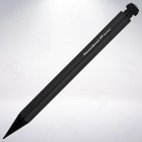簡約的八角形筆桿設計,搭配上消光黑色以及陽極氧化鋁技術構成了實用性十分高的Kaweco Special自動鉛筆。筆芯尺寸為0.9mm, 按壓式出芯,在筆蓋下方附有筆身橡皮擦,筆蓋上則是帶有Kaweco的經典標誌。另外,舊款的筆頭為一體式設計,整體含護芯管以黑色樹脂製成,與現行版本的銀色金屬護芯管不同。