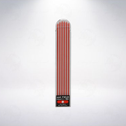 日本「三菱鉛筆」所生產的2.0mm工程鉛筆替換筆芯,強韌且書寫順暢,建築用,在木材表面上使用也很合適,顏色為紅色,每盒內含6支筆芯,長度為130mm。