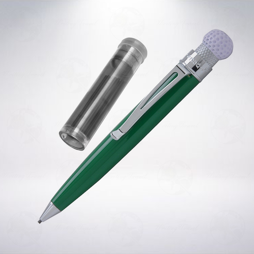 以高爾夫球為主題的特殊鉛筆,筆身以綠色呈現,呼應高爾夫球場的綠色草地,頂端處有一顆非常可愛的小白球,旋轉此處即可控制筆芯進出,整體來說是一支體型偏小的鉛筆,長度僅有8.8cm,使用的筆芯規格為1.15mm,長度僅有3cm,注意更換替芯方式,是將筆芯直接放入筆頭處,並旋轉小白球收入筆芯,詳細細節可以參閱隨附的說明書。目前此款式已不再生產,喜歡收藏特殊造型或復古鉛筆的朋友,千萬不要錯過!