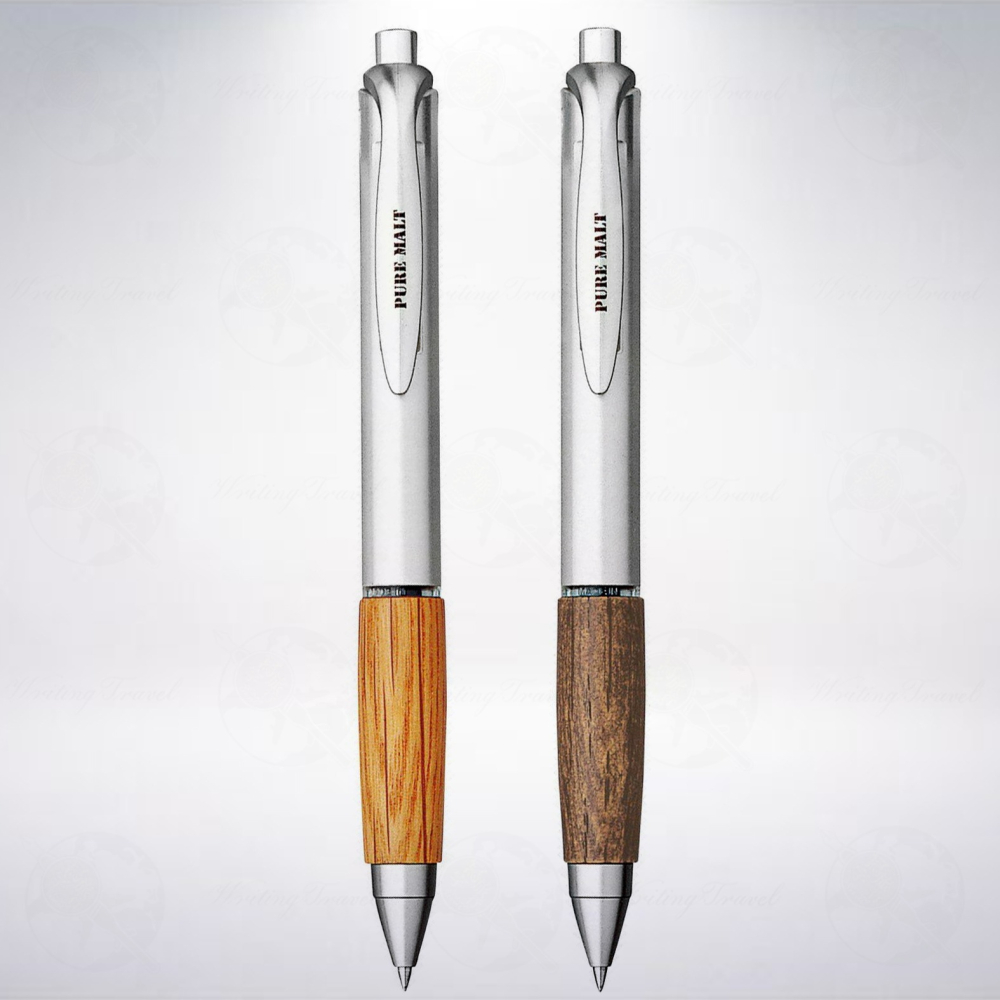 日本三菱鉛筆公司引以為特色的中性原子筆,外觀上以堅實的橡木桶材為主要特色,配置在握位上,不僅使用起來舒適,更營造良好的視覺感。出芯方式為按壓式,按壓筆蓋即可以輕鬆操作。共有2種款式,以握位木軸顏色為區別,包括深褐色與木紋色。整體來說,是列為隨身筆的好選擇,CP值很高的筆款。