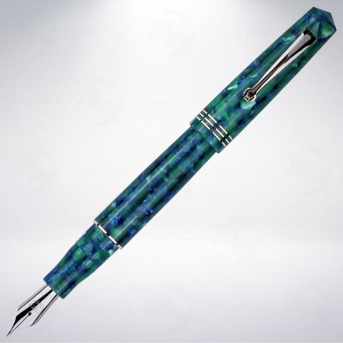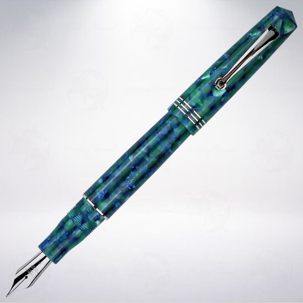 「Momento Zero」系列,意指「1個新的開始」,積極且渴望的以激情與經驗,開始驅動40年對於書寫工具的熱情。靈感來自義大利經典的復古風格,發展出適中的筆款尺寸,與精細的金屬裝飾細節達到平衡。復古滾輪造型筆夾,搭配藍色樹脂筆身。吸墨器卡式墨水兩用,筆身刻有筆款編號,義大利手工製作。本款式「藍綠色/Green Blue」充滿著濃濃的島嶼風格,樹脂材質呈現混合了藍色與綠色系的元素,清涼感十足,彷彿無敵海景般的吸引每個人的目光。