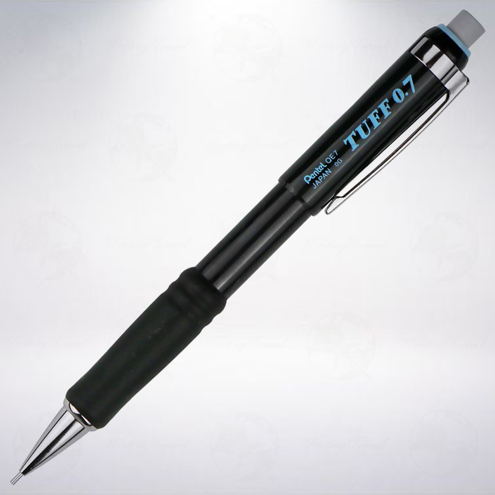 日本文具大廠「Pentel」所生產的優質自動鉛筆,握位採用對手部觸感極佳的矽膠製作而成,對於有長時間使用需求的朋友而言,是一項福音。筆身橡皮擦採用旋轉上筆管的方式旋出,其直徑約莫7mm,長度最長可以伸出30mm,無意增加其強度與實用性。另外,填入筆芯時,須拆下筆身中段,才可填入替換筆芯,這一點在使用之前必須留意。