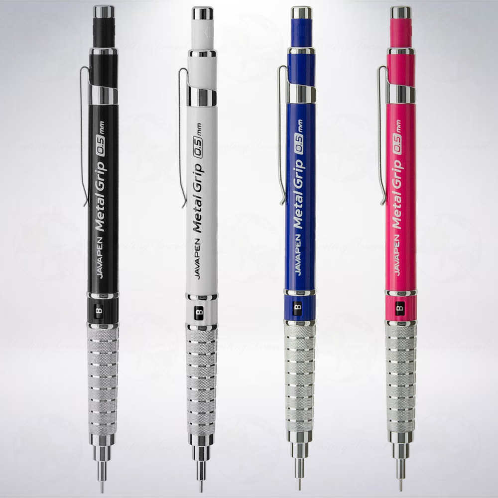 韓國新興文具商「JAVAPEN」成立於1997年,致力於開發與生產各式生活中經常使用的筆記具,諸如鋼筆、原子筆、自動鉛筆等。本款式是與日本當地廠商合作生產的製圖自動鉛筆,以「金屬感」為設計出發點,非常具有日式文具的風格。書寫時帶有些許低重心感,整體重量上偏輕盈,握位訴求止滑感,帶有綿密的滾花紋路,筆芯尺寸僅有0.5mm單一款式,筆身顏色豐富,有黑色、白色、藍色與粉紅色共4種,附有筆芯硬度指示窗,可以隨使用狀況調整2B~4H,筆身橡皮擦採用旋轉式操作,透過旋轉筆帽可以伸出或收回橡皮擦。