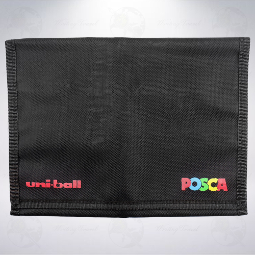專門為「POSCA麥克筆」所設計的專用筆袋。由黑色聚酯纖維製成,正面帶有「uni-ball」和「POSCA」的標誌,堅固且耐用,非常適合隨身攜帶,隨時享受創作的精彩。開合部分為三折式,外側以金屬扣子固定,內部設置有彈性套繩,共可容納20支不同顏色與規格的POSCA麥克筆(PC-1M、PC-3M、PC-5M)。
