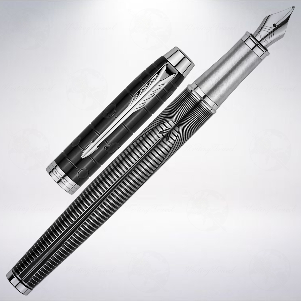 「金屬追求/Metallic Pursuit」以具重量感的全金屬結構讓人留下深刻的印象,從而帶來高品質的感覺。旨在讚美人類無盡的決心和動力,反映了一個具有無限機遇的世界。筆身以磨砂不銹鋼表面施以蝕刻處理,呈現火箭發射的意象圖案,立體的圖案讓整體十分動感,筆蓋與筆夾部分為拋光鍍鉻件,筆頭略有些許髮絲紋處理,營造的運動感十分強烈。