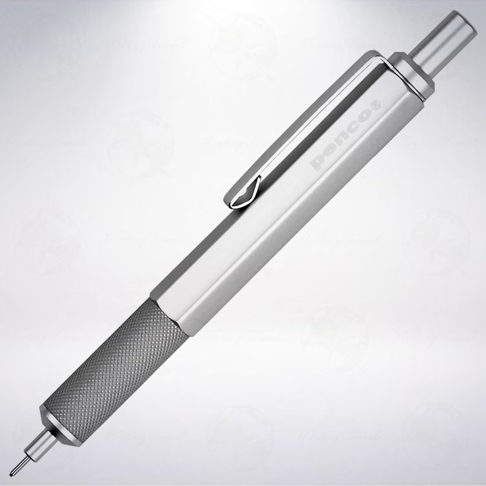 Penco首度推出的金屬製圖自動鉛筆,以其簡單精緻的設計和在日本製造的可靠品質而著稱。握把上附有菱形紋路,不僅防滑,也增加握持感,六角形的鋁製筆身可以防止滾動,也十分貼手。尺寸上長度僅有10.6公分,屬於小巧的等級,攜行性佳,直接放置在口袋中攜帶,也沒有問題,使是手小的女性使用者也操作起來,也十分容易。