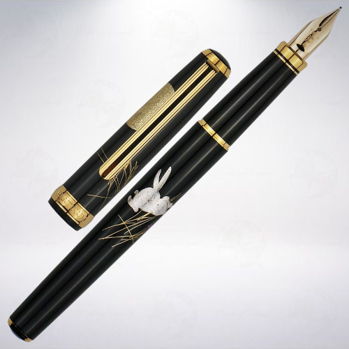 從各樣的金澤箔中精選適合的顔色,以匠工精湛技藝,在鋼筆的筆身上細緻地描繪出日本美景。以金沢箔製作出「月亮」與「秋草」,用銀箔描繪出跳躍的「兔子」,將美景以寫實的方式表現了出來。月亮與兔子之間的柔美關係,讓書寫更加增添樂趣。筆尖採用可書寫流暢的18K金材質。製作了一款考究,輕快平衡感卓越的鋼筆。