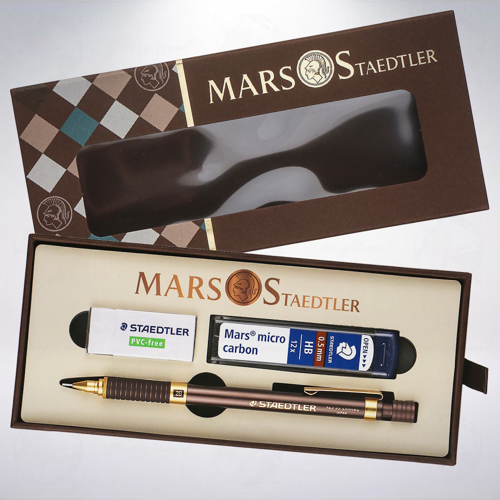 「施德樓/STAEDTLER」公司為旗下極受市場歡迎的「925」系列所推出的「中國限定」版本,繼前幾彈於市場深獲肯定之後,再接再厲推出的下一彈。筆身顏色為相當具有療癒感的「巧克力棕/Chocolate」,筆頭、筆夾與硬度指示窗採用鍍鉻件呈現,讓前後連成一氣。筆芯尺寸只有0.5mm單一選擇,筆蓋上面標註「STAEDTLER limited edition」的字樣,以圓形方式圍繞著原廠標誌。附有筆身橡皮擦,並帶清潔針可供清潔筆頭內殘存的筆芯。出芯方式為按壓式,其餘所有尺寸皆予定番版本相符。附上的專屬禮盒以可口的巧克力為主題,棕色系的組合帶出香氣感,呈現一股溫暖的氛圍。無論送禮或收藏,都是極佳的選擇喔!