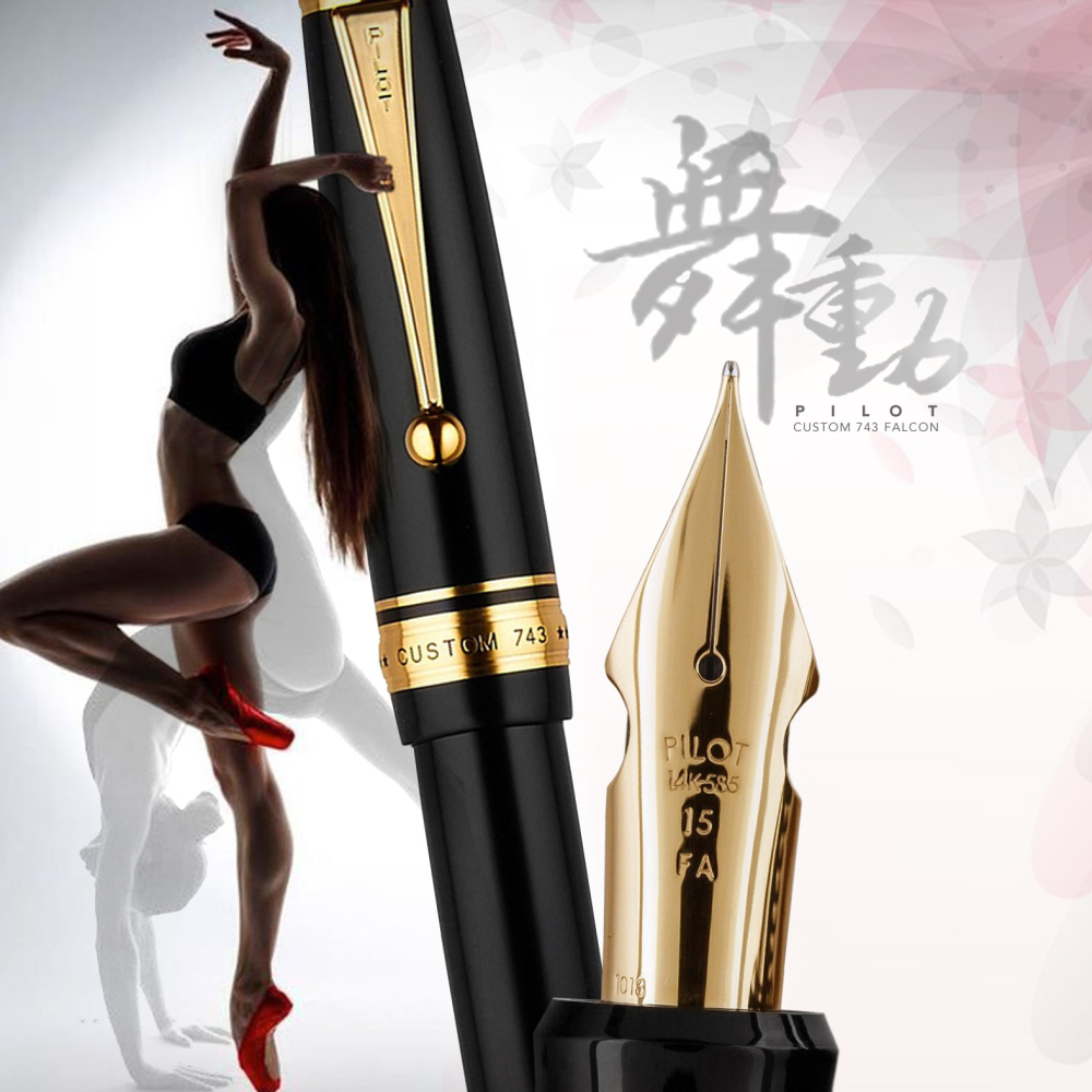 PILOT是日本三大鋼筆品牌之一,CUSTOM系列以追求書寫流暢度為主,所以提供了多種風格的筆尖,讓每個人都可以選擇適合自己的筆尖,徜徉於書寫樂趣中;Custom有客製的意思,這就是該筆款追求的初衷。「Custom 743 FA」,其筆尖軟硬適中,程度約介於「Elabo」 和 「Custom 742 FA」之間,對於有軟筆尖需求,卻對掌控「Custom 742 FA」較無把握的使用者而言,或許就是個「恰到好處」的選擇。筆尖種類為14K/15號尖,軟彈適中的內在,用於書寫中文字相當適合,可展現出如毛筆字般的字幅強弱,至於書寫英文花體字方面,銅板體或史賓賽體皆適用;另外建議搭配流動性高的墨水,如J.Herbin 或百樂Iroshizuku墨水,出墨較為順暢,較能匹配其出墨速度。
