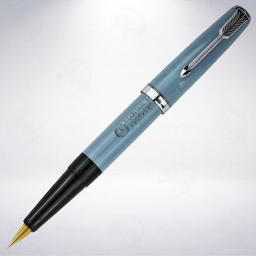 由日本「三村製作所」製造,年代已不可考,為庫存新品。筆身材質為樹脂,筆夾造型宛如派克51鋼筆,相當經典,筆身刻印其品牌Logo「金」和英文字「FOUNTAIN PEN TOKYO MIMURA」,但因年代久遠,刻印字已有些許不完整。