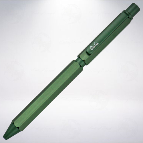 「羅地亞/RHODIA」的精緻書寫系列: 「Script」,發佈以來深受許多使用者的喜愛,並在全球80多個國家發行。2021年,延續之前成功的經驗,再度推出便利性極高的多功能筆。筆身顏色為2021年專屬的「鼠尾草綠/Sage Green」,形態採用鋁製六角形設計,並帶有漂亮生動的髮絲紋。功能上配備有黑色和紅色共2種原子筆與0.5mm自動鉛筆,只要旋轉筆身中間凹下的部分,即可輕鬆切換各種功能,要注意的是,填入鉛筆筆芯時,需抽出內部機件,將自動鉛筆機芯前端卸下後,填入適當數量筆芯,原廠建議為3支。使用前請務必詳閱說明書。
