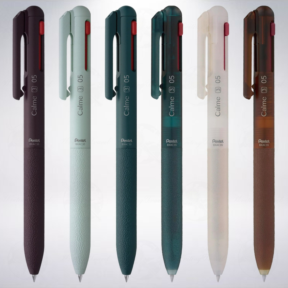 知名文具用品大廠「Pentel」所出品的優質原子筆:「Calme(カルム)」,由無印良品當家設計師三宅一成開發,在2021年12月15日推出,通過接收上下按壓時移動的轉子機制,可以防止碰撞噪音,按壓的聲音比一般的筆安靜,操作噪音降低了66%,訴求舒適和無干擾,方便您的手,並尊重您周圍的人。