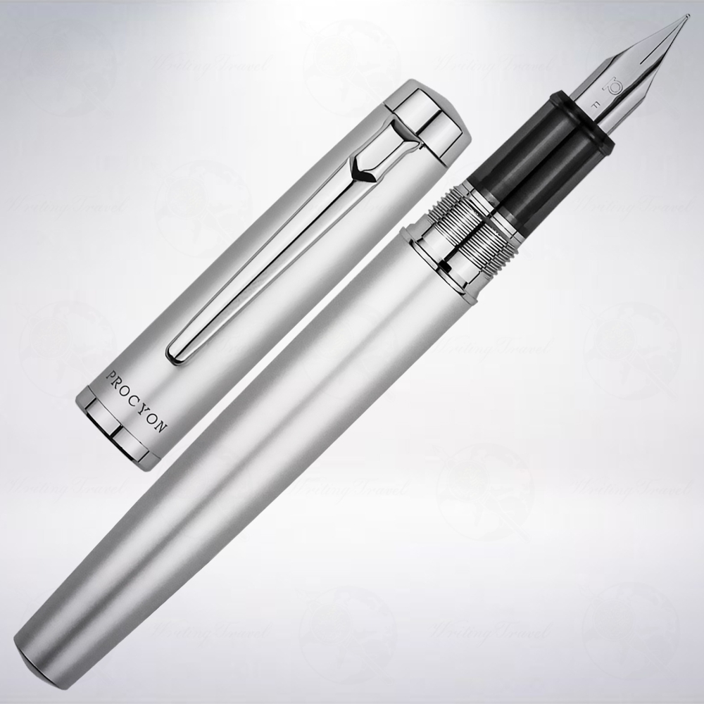 1919年創業的日本白金万年筆(Platinum Pen)於2018年推出的全新鋼筆系列: 「PROCYON(南河三)」,以小犬星座中最耀眼的恆星為命名,採用全新的鋼筆設計概念,無論在商業場所和日常生活中使用,都可以相得益彰。採用特殊的「滑動和密封機制(Slip&Seal Mechanism)」,號稱2年不使用也可以一筆出墨,可以隨時提供流暢的書寫體驗,筆身採用鋁金屬製成,提供最佳的配重平衡,五角形不鏽鋼筆尖激發書寫的樂趣,彈性優良,讓人有K金尖的書寫觸感,全新的筆舌設計,讓上墨過程變得簡便,也可以完全利用墨水瓶的每一滴墨水。顏色款式十分豐富,因應適用於商務場所和日常生活上,採用了全新設計,包括有霧黑、玫瑰粉、香檳金和銀色。
