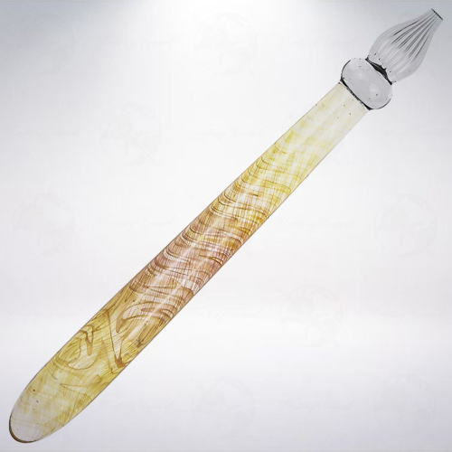 「Hanabi」意即「花火」來自日本的Hanabi Glass Studio將對玻璃的終身熱愛化作指尖靈感,在熾熱火焰中捕捉煙火綻放的永恆瞬間;藝術家Lucas Mahoney以獨特的貴金屬薰法,將金銀氣化入色,為每一位書寫者打造出如虹彩般幻變、獨一無二的夢幻玻璃筆。每一支筆尖的轉動,都是光影與墨水的華麗共舞。由於全手工製作工序繁複,邀請您收藏這份來自日本的純手工溫度。筆身採用硼矽酸鹽玻璃製成,內部分佈有24K金和99.99純銀卷鬚,由於筆身顏色為半透明,因此會根據背景顏色而變化,每個角度在視覺上都呈現不同的光景,配備書法筆尖(Calligraphy),筆頭平尖尺寸約4mm,可用來書寫義大利體、安修爾體或者歌德體等。