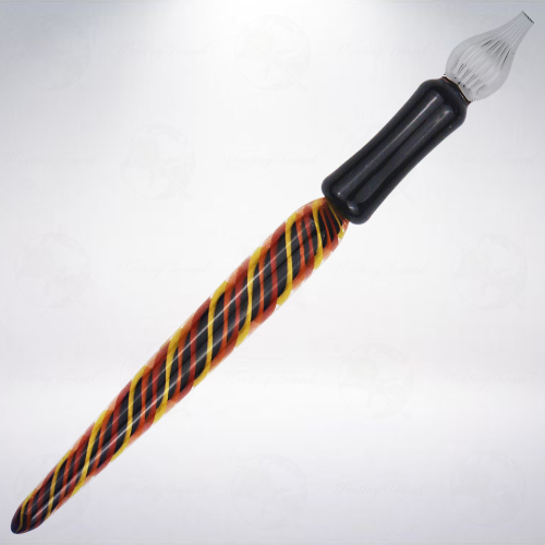 「Hanabi」意即「花火」來自日本的Hanabi Glass Studio將對玻璃的終身熱愛化作指尖靈感,在熾熱火焰中捕捉煙火綻放的永恆瞬間;藝術家Lucas Mahoney以獨特的貴金屬薰法,將金銀氣化入色,為每一位書寫者打造出如虹彩般幻變、獨一無二的夢幻玻璃筆。每一支筆尖的轉動,都是光影與墨水的華麗共舞。由於全手工製作工序繁複,邀請您收藏這份來自日本的純手工溫度。「糖果/Candy」筆身以紅色與黃色為主題,並變換各種型態,顏色變化豐富,每個角度的視覺感都有截然不同的風貌,配備書法筆尖(Calligraphy),筆頭平尖尺寸約4mm,可用來書寫義大利體、安修爾體或者歌德體等。