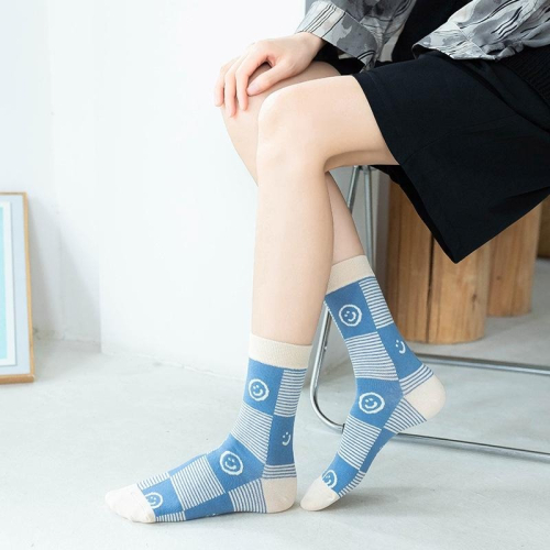 B854|藍色系笑臉中筒襪 可愛襪子 韓系襪子 長襪 女生長襪 時尚襪子xiami