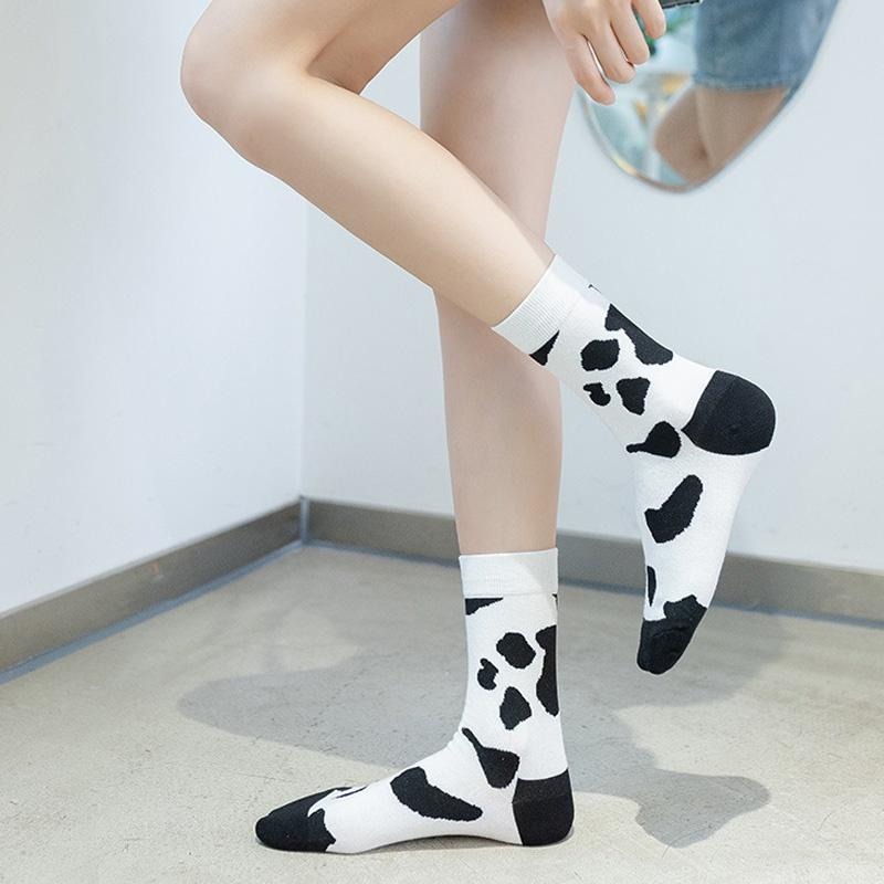 B854| 中性乳牛斑馬圓點圖案黑白撞色中筒襪 情侶百搭運動襪 潮流長襪 終統襪 黑白襪xiami