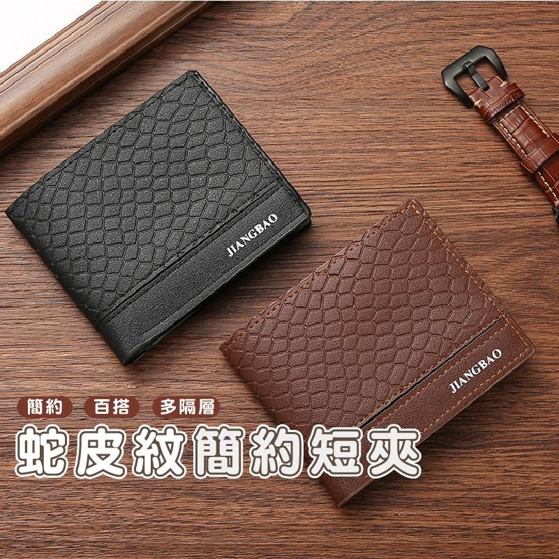 BG450|韓版商務男士短款皮夾 錢包 蛇紋時尚兩折零錢包 大容量多卡位男皮夾 蛇紋皮夾 錢包 休閒 多卡槽