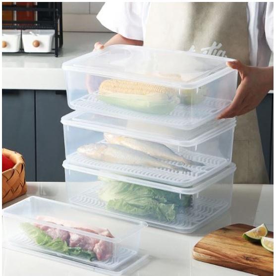 HO鶴百貨-冰箱冷藏盒可瀝水廚房塑料分裝冷凍盒食物雞蛋魚水果密封盒