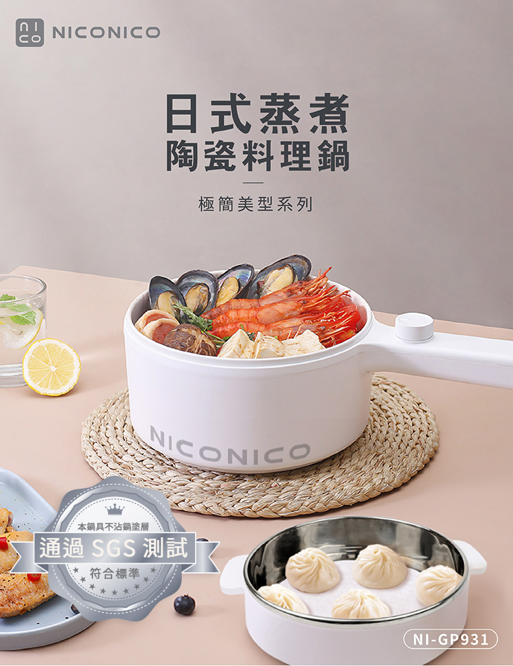 包裝內容物:包含主機、蒸籠、玻璃鍋蓋、電源線