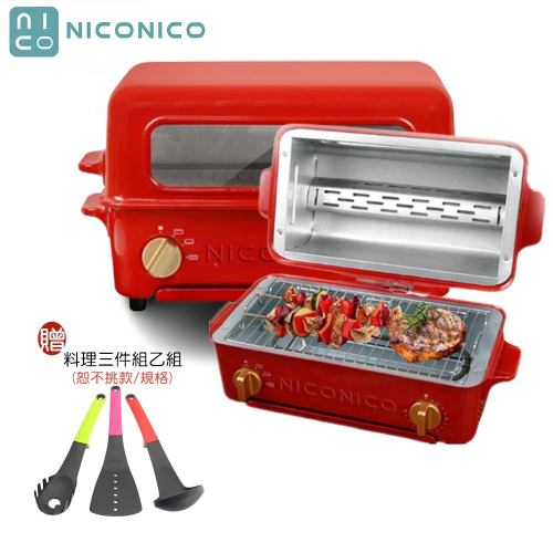 【現貨+贈料理三件組】NICONICO 掀蓋燒烤式3.5L蒸氣烤箱 NI-S805
