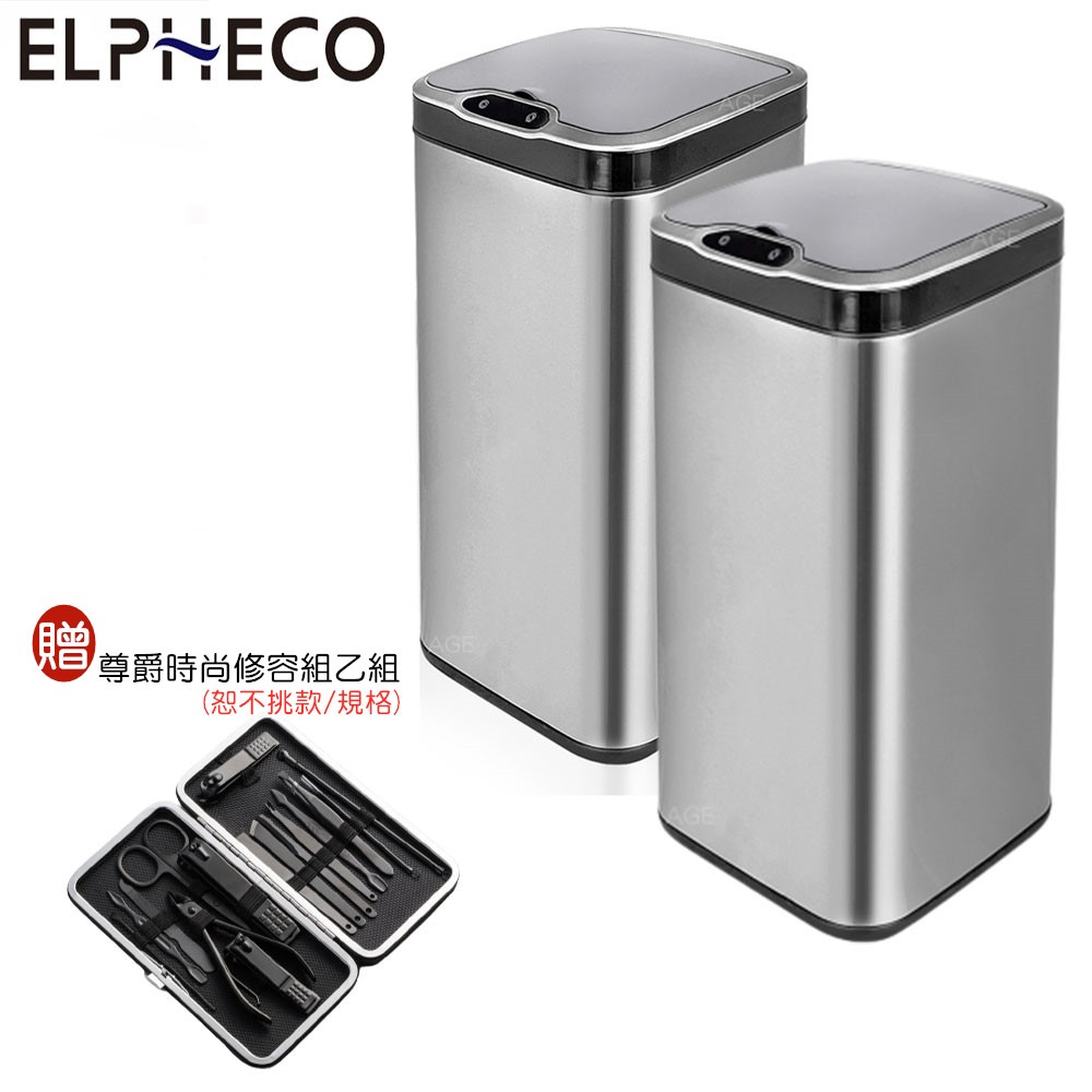 【兩入超值組+贈尊爵時尚修容組】美國ELPHECO ELPH6312U 不鏽鋼除臭感應垃圾桶-臭氧殺菌 30L 銀色