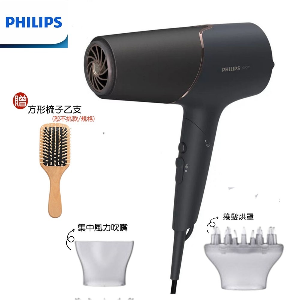 【贈方型按摩梳】PHILIPS BHD538/21 飛利浦智能護髮礦物負離子吹風機 霧黑金