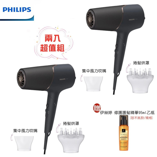【兩入超值組+贈伊絲婷護髮精華】PHILIPS BHD538/21 飛利浦智能護髮礦物負離子吹風機 霧黑金