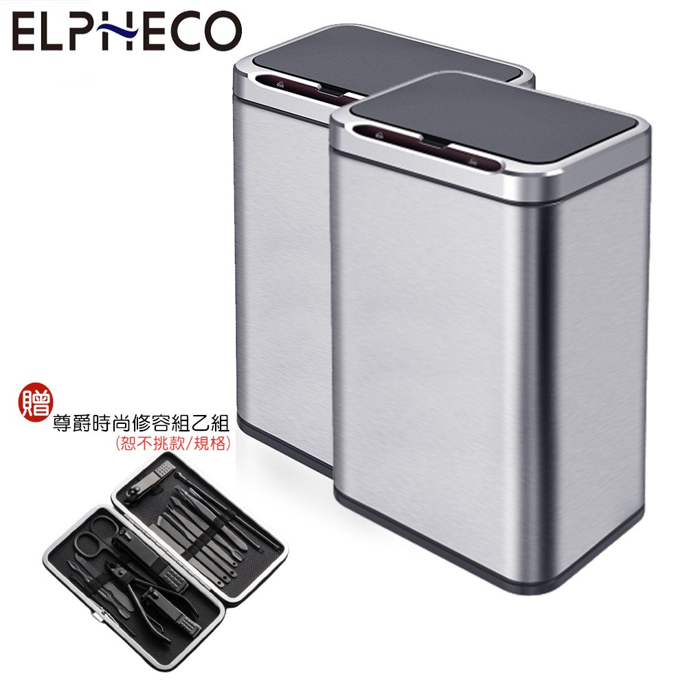 【兩入超值組+贈尊爵時尚修容組】美國ELPHECO ELPH9613 不鏽鋼臭氧自動除臭感應垃圾桶 22L 銀色