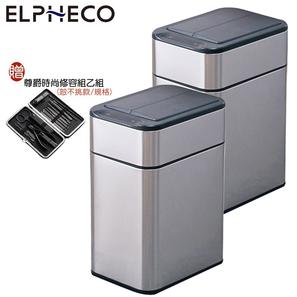 【兩入超值組+贈尊爵時尚修容組】美國ELPHECO ELPH5534U 不鏽鋼雙開除臭感應垃圾桶垃圾桶 50公升