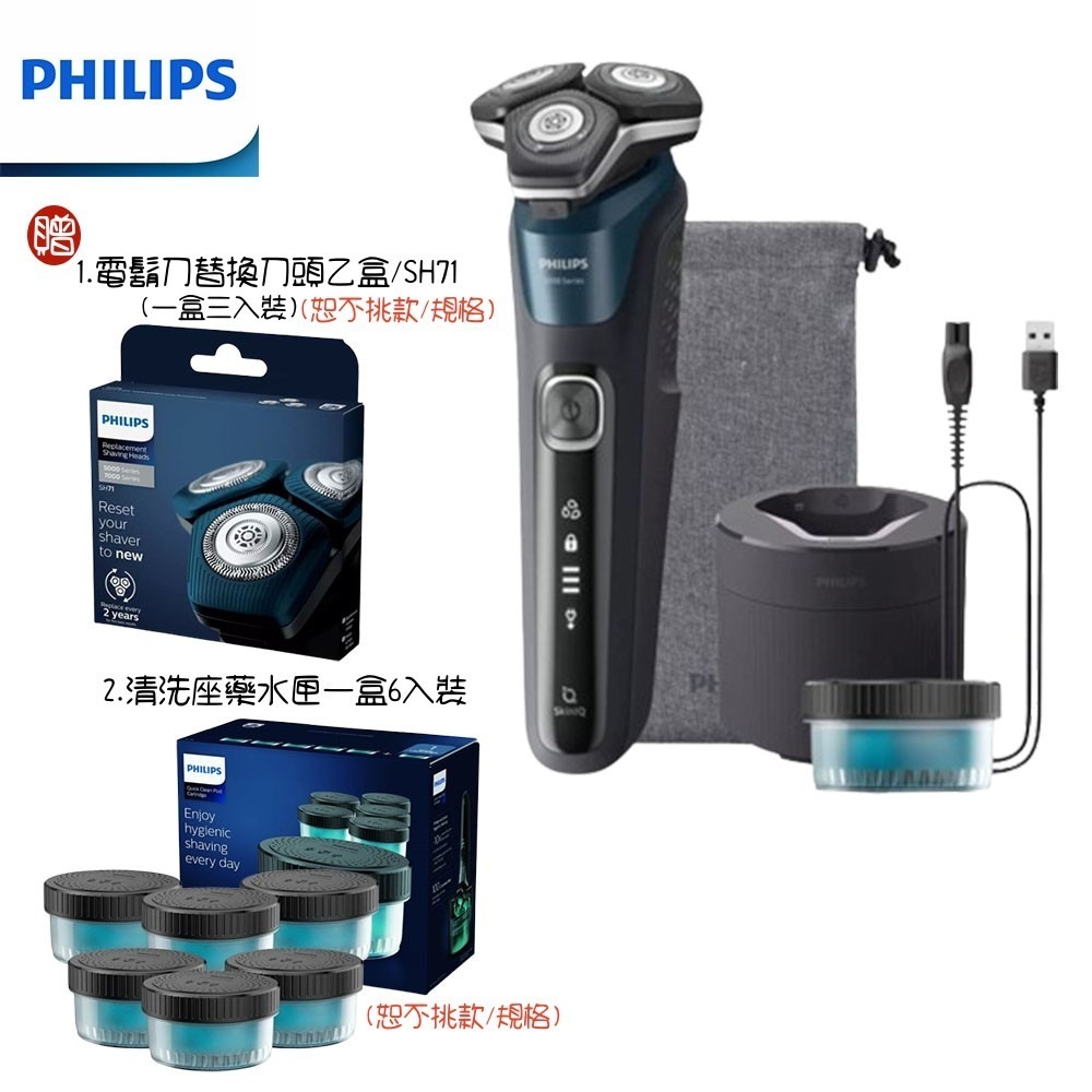 【贈原廠盒裝備用刀頭+清洗座藥水匣6入裝】PHILIPS 飛利浦全新AI 5系列電動刮鬍刀 S5889/60