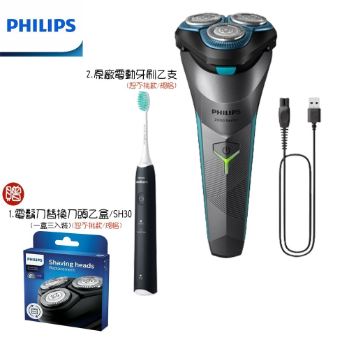 (贈原廠盒裝備用刀頭) PHILIPS 飛利浦電競2系列三刀頭電動刮鬍刀S2306/02