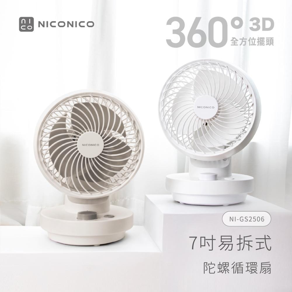 【NICONICO】兩入超值組 限量特價 7吋易拆式陀螺循環扇/循環風扇/風扇/電風扇 NI-GS2506