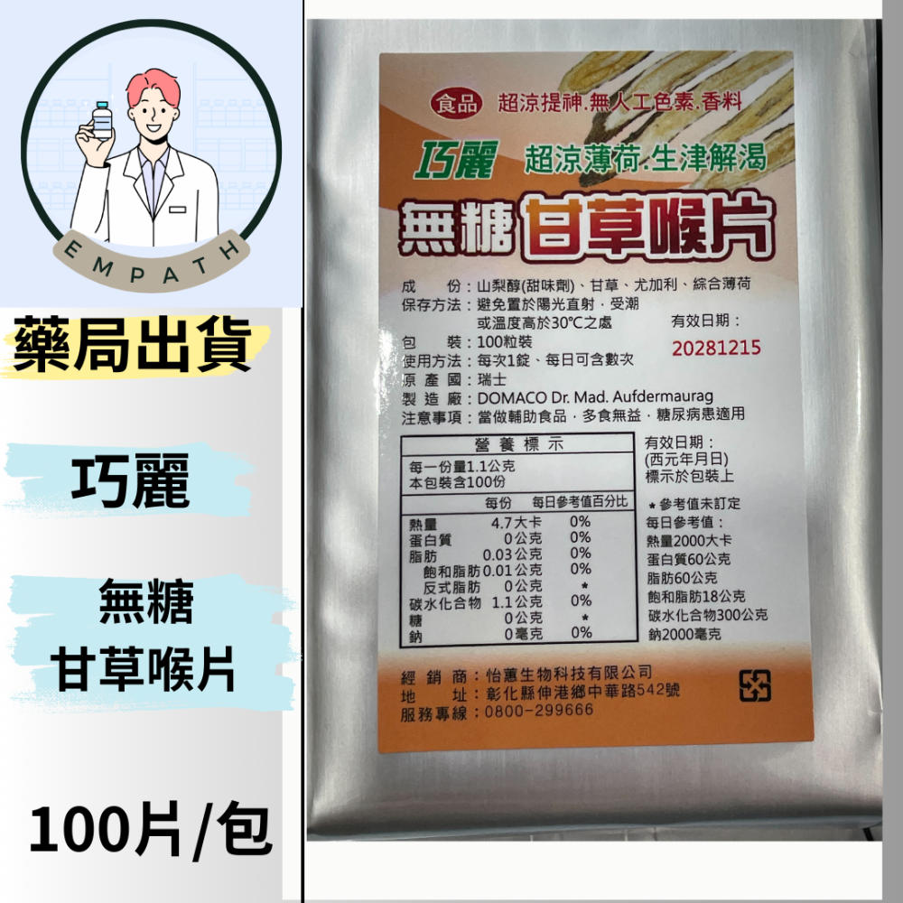 成分:山梨醇(甜味劑)、甘草、尤加利、綜合薄荷